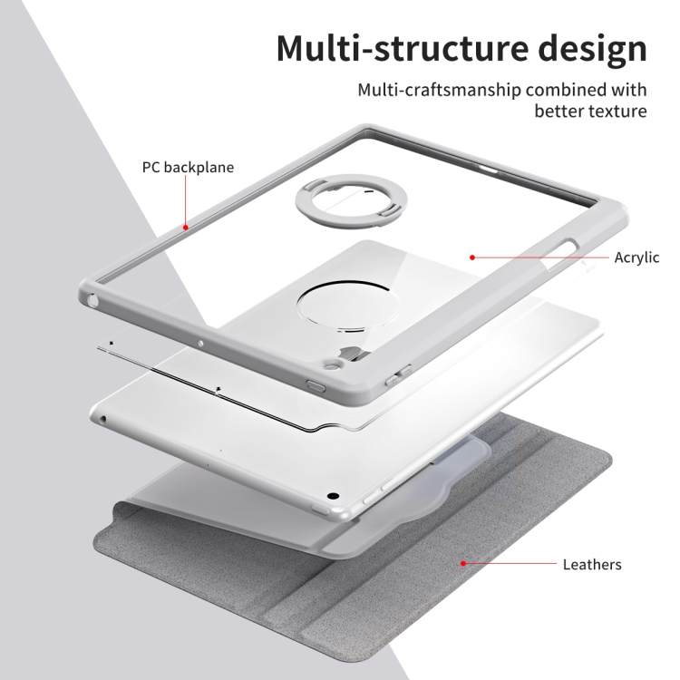 Funda para Tableta iPad Pro 10.2 2021 2020 2019 Cuero Desmontable Rotación 360 (Gris)