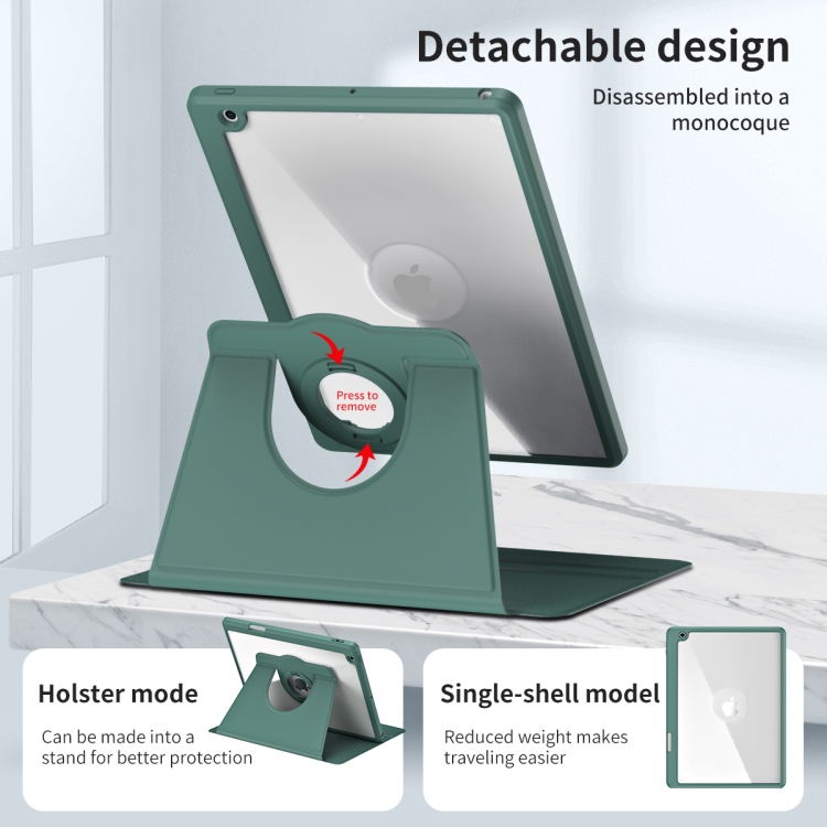 Funda para Tableta iPad Pro 10.2 2021 2020 2019 Cuero Desmontable Rotación 360 (Verde Oscuro)