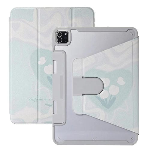 Estuche para Tableta iPad Pro 11 Cuero Pintado Rotación Cajón Dividido (Flores)