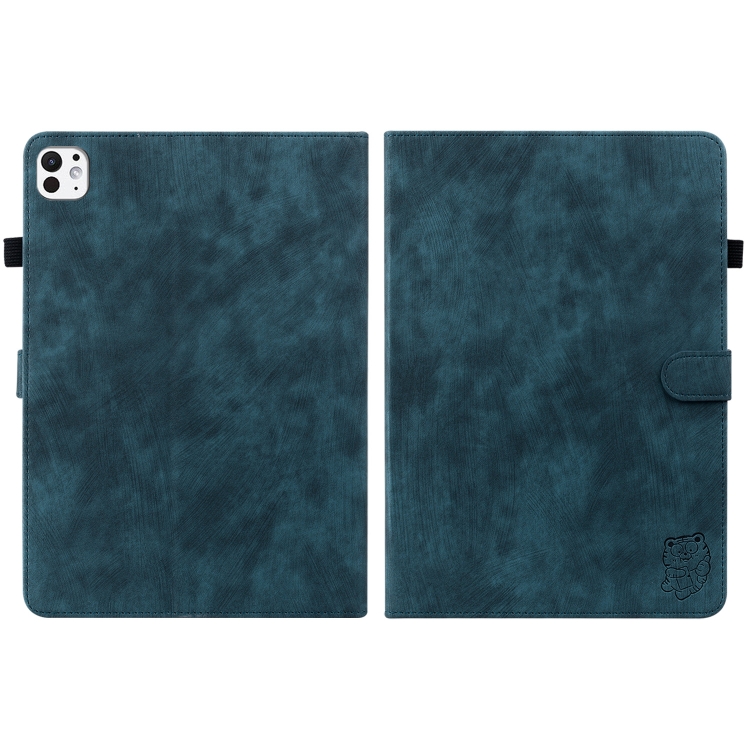 Funda de Piel para iPad Pro 11 (2024) Estampado de Tigre En Relieve (Azul Oscuro)