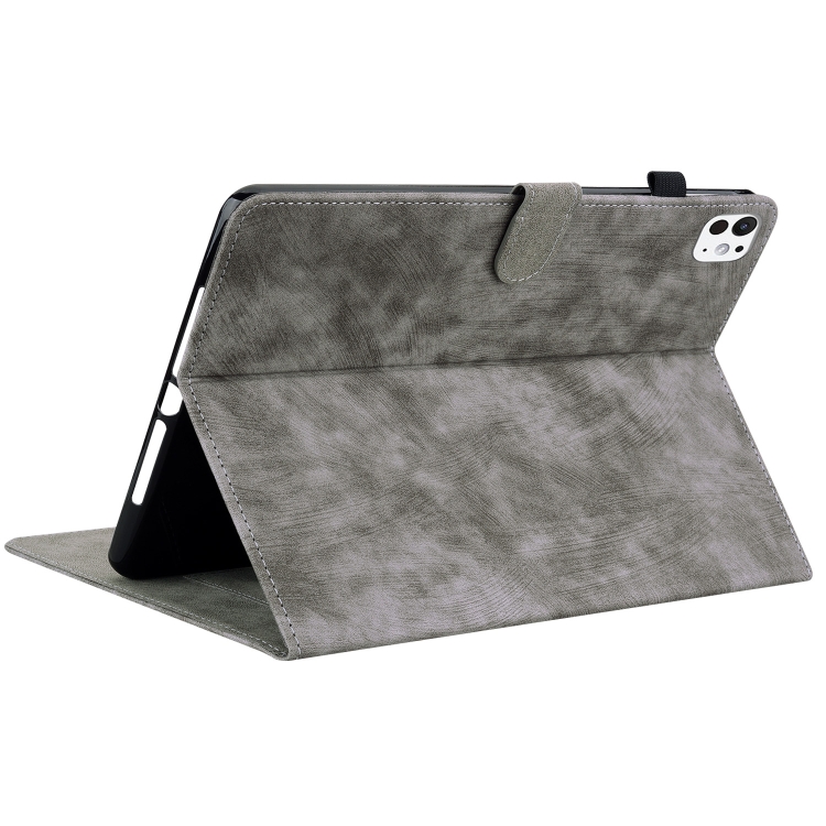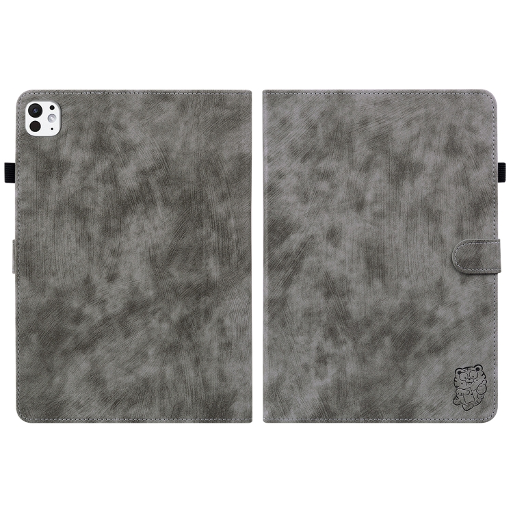 Funda de Piel para iPad Pro 11 (2024) con Estampado de Tigre en Relieve (Gris)