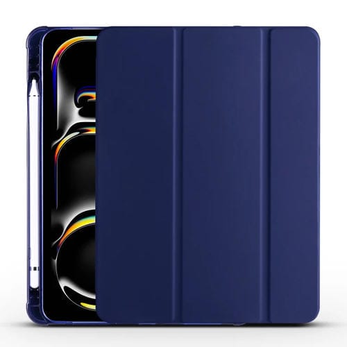 Funda inteligente de cuero TPU para iPad Pro 11 (2024) con 3 pliegues y ranura para bolígrafo (Azul Oscuro)