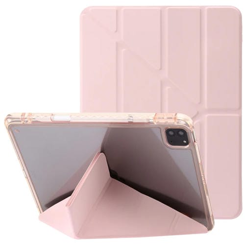 Estuche para Tableta iPad Pro 12.9 Cuero con Deformación Acrílica Transparente (Rosa)