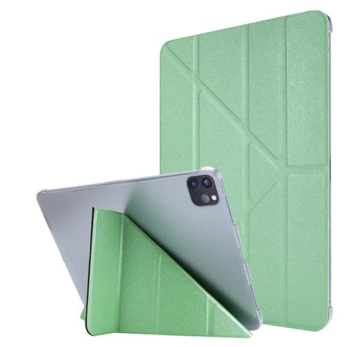 Funda de Cuero para iPad Pro 12.9 2022 / 2021 Textura de Seda Deformación Horizontal Flip con Soporte (Verde)