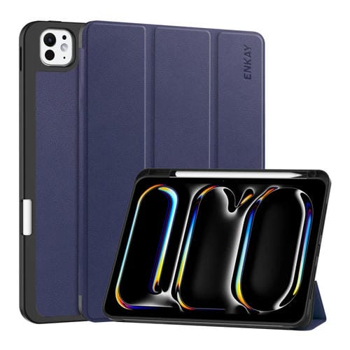 Funda para Tableta Enkay iPad Pro 13 2024 Cuero TPU Textura Custer Triple Ranura para Bolígrafo (Azul Oscuro)