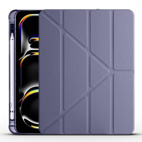 Funda para Tableta iPad Pro 13 2024 Cuero TPU Plegable Múltiple Ranura Bolígrafo (Púrpura Lavanda)