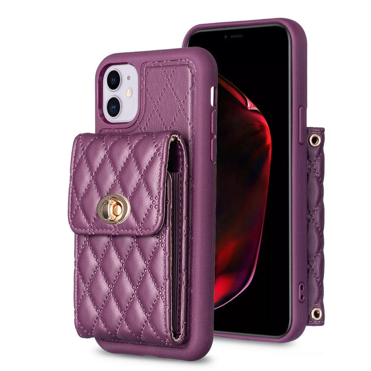 Caja de Teléfono para iPhone 11 Rómbica Cuero con Hebilla de Metal Vertical (Púrpura Oscuro)