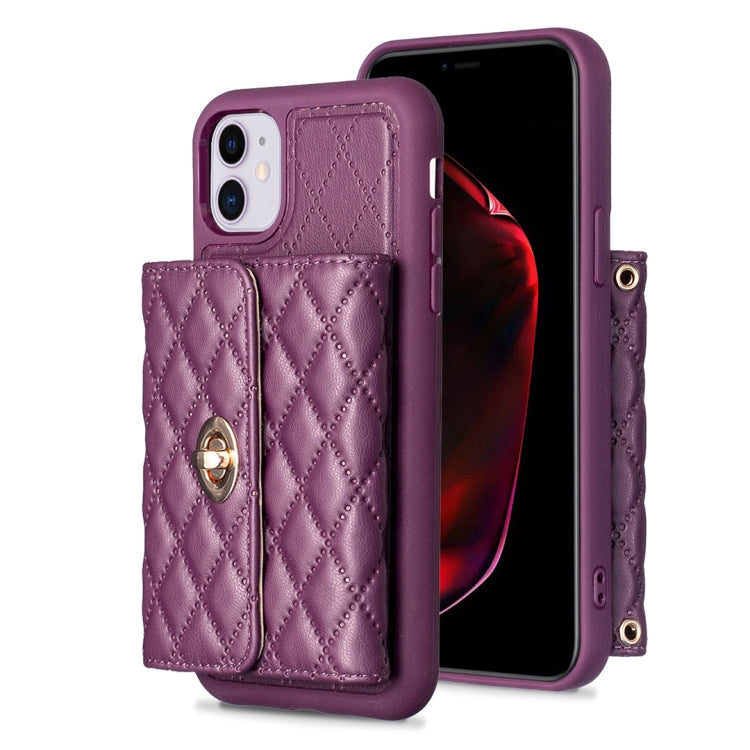 Caja de Teléfono de Cuero Rómbica para iPhone 11 Billetera con Hebilla de Metal Horizontal (Púrpura Oscuro)