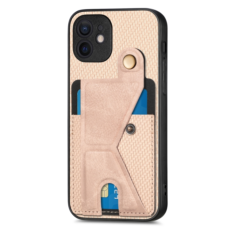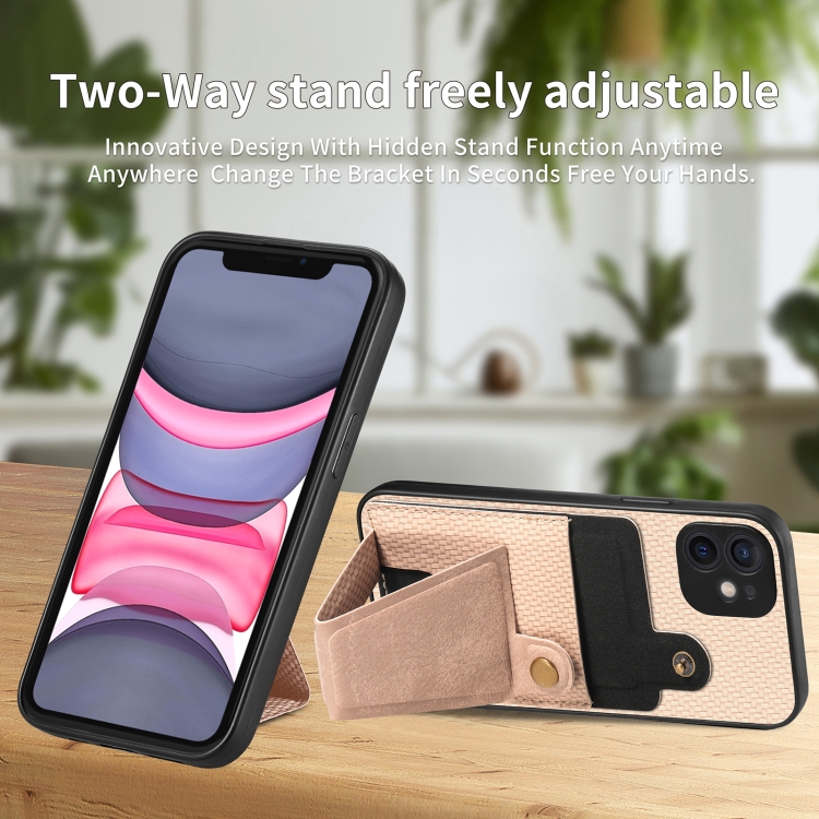 Funda para Teléfono iPhone 11 Fibra de Carbono Flip Card con Soporte en Forma de K (Caqui)