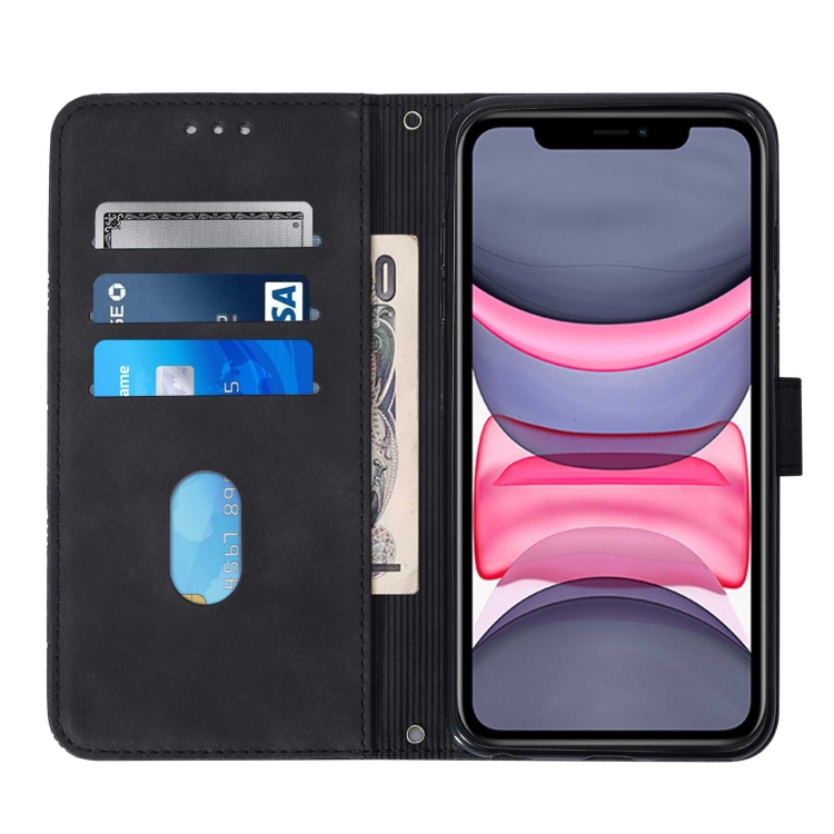 Funda de Cuero Crossbody para iPhone 11 con Tapa en Relieve (Negro)