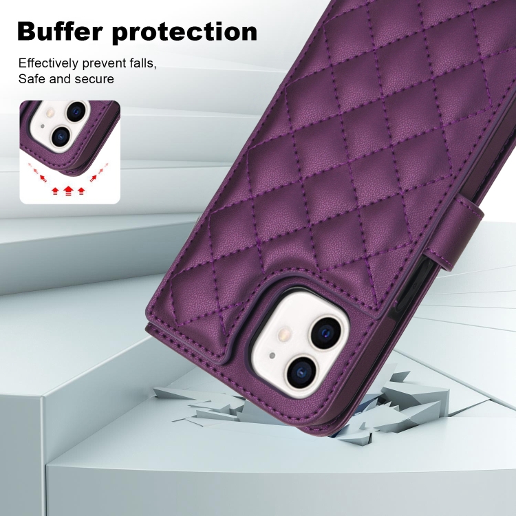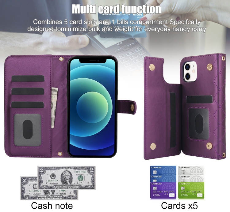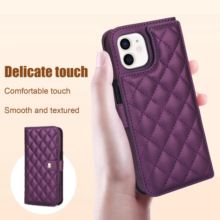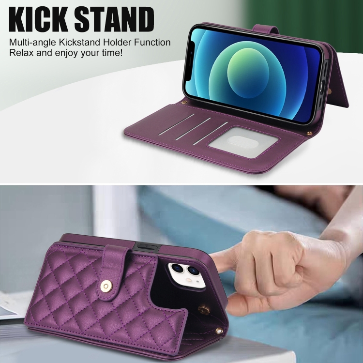 Estuche para Teléfono iPhone 11 Cuero Rómbico Multifunción Cruzado (Púrpura Oscuro)
