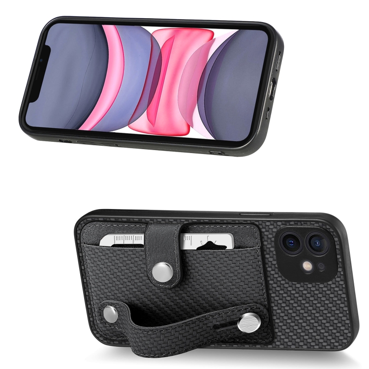 Caja del teléfono para iPhone 11 Muñequera Kickstand Tarjeta Monedero con Herramienta Cuchillo (Negro)