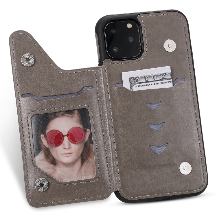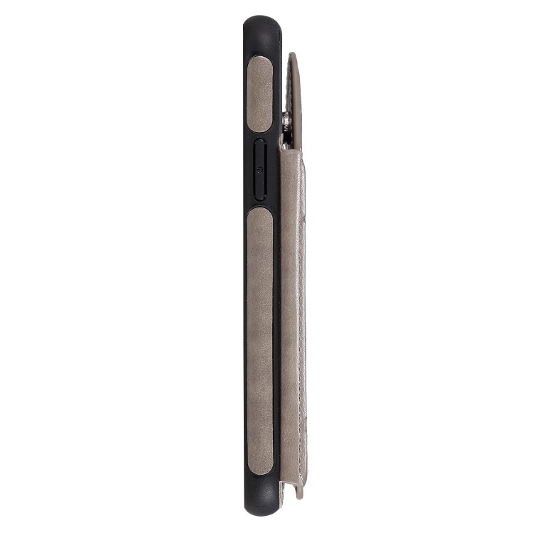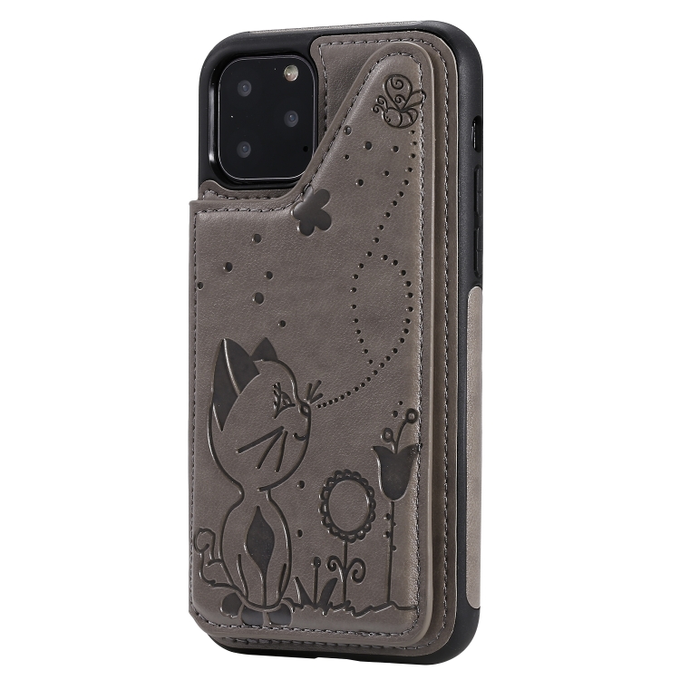 Estuche protector para iPhone 11 Pro Cat Bee patrón en relieve a prueba de golpes con ranuras para tarjetas y marco de fotos (Gris)