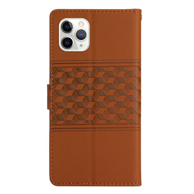 Funda para iPhone 11 Pro Diamond Embossed Skin Feel cuero con Cordón (Marrón)