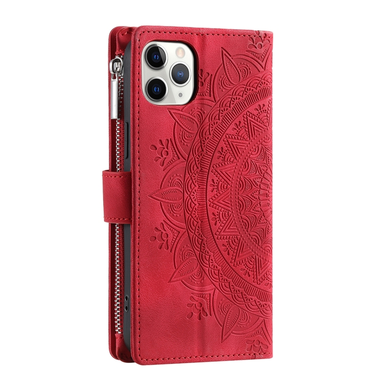 Funda para iPhone 11 Pro Cuero con Cremallera Totem y Múltiples Tarjetas (Rojo)