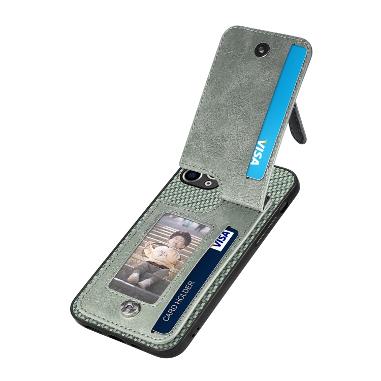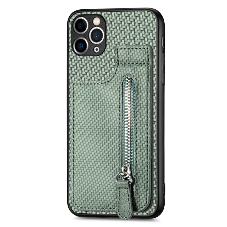 Funda de teléfono iPhone 11 Pro con cremallera vertical fibra de carbono (Verde)