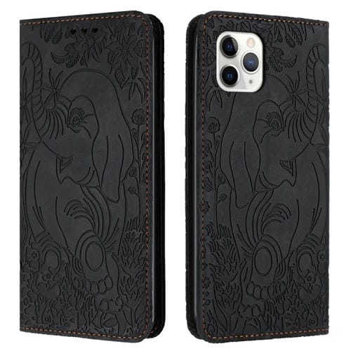 Funda de Teléfono iPhone 11 Pro Cuero con Relieve de Elefante Retro (Negro)