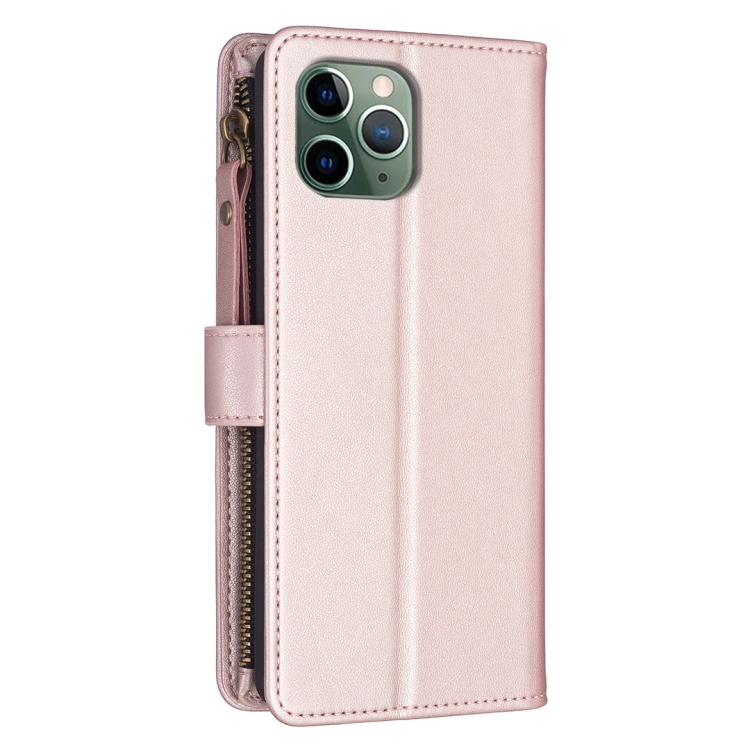 Funda de Cuero para iPhone 11 Pro Max con 9 Ranuras para Tarjetas y Cremallera (Oro Rosa)