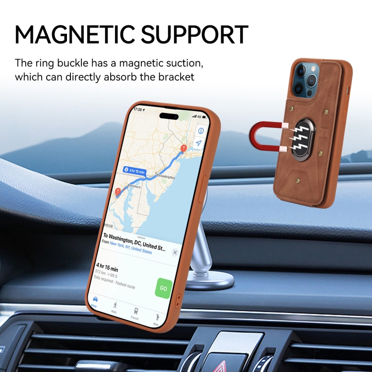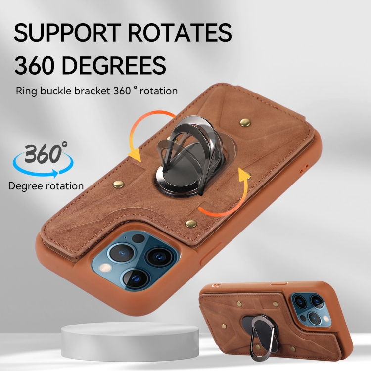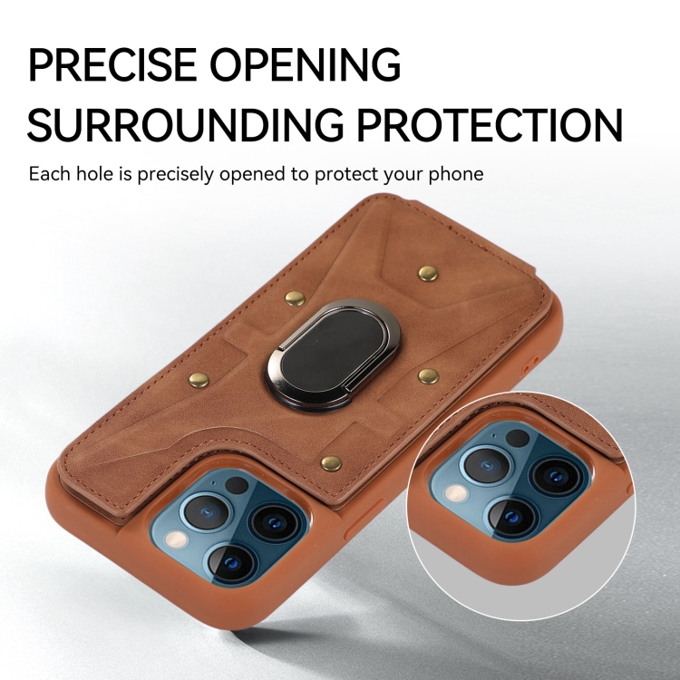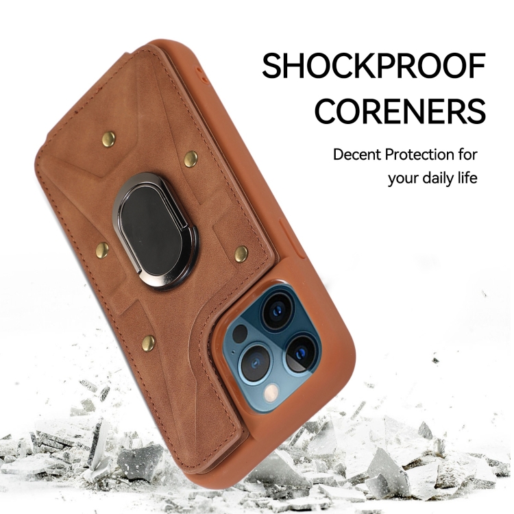 Funda para iPhone 11 Pro Max Armor Ring Wallet Back Cover (Marrón)
