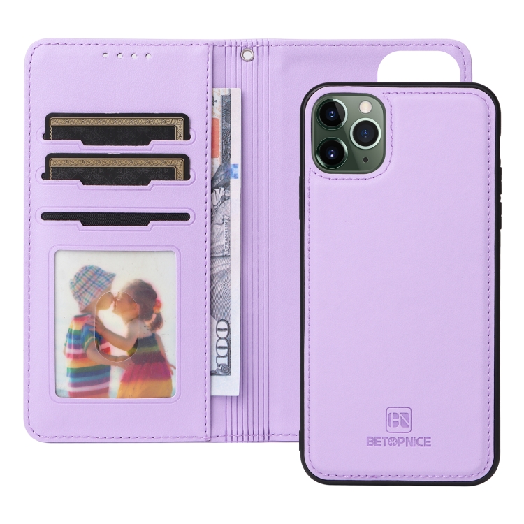 Funda para iPhone 11 Pro Max Betopnice BN-005 2 en 1 Cuero Desmontable (Púrpura Claro)