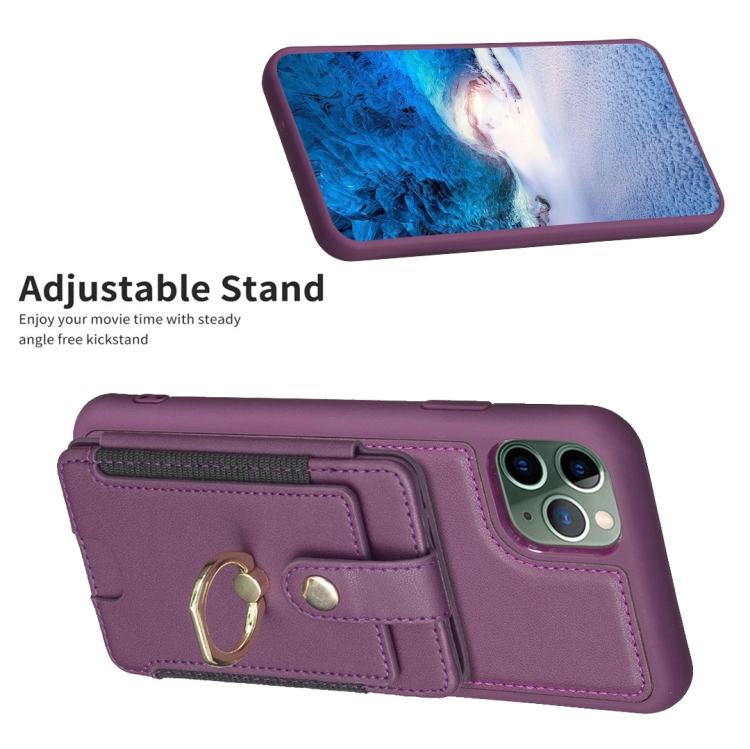 Funda de teléfono BF27 para iPhone 11 Pro Max con soporte para tarjeta y anillo de metal (Púrpura Oscuro)