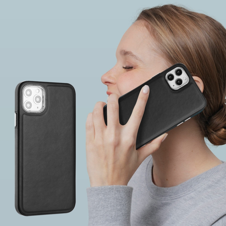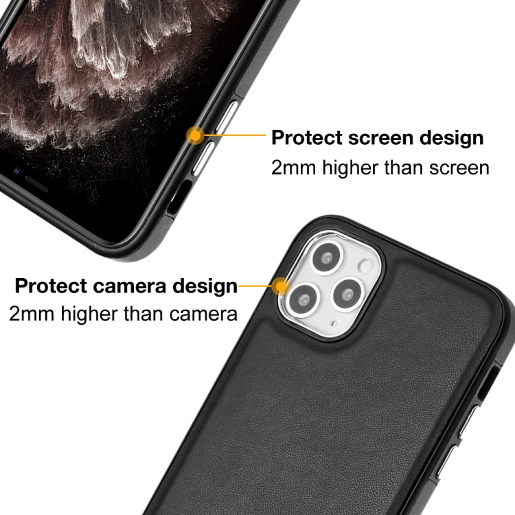 Funda de Teléfono para iPhone 11 Pro Max Cobertura Completa Textura de Cuero (Negro)