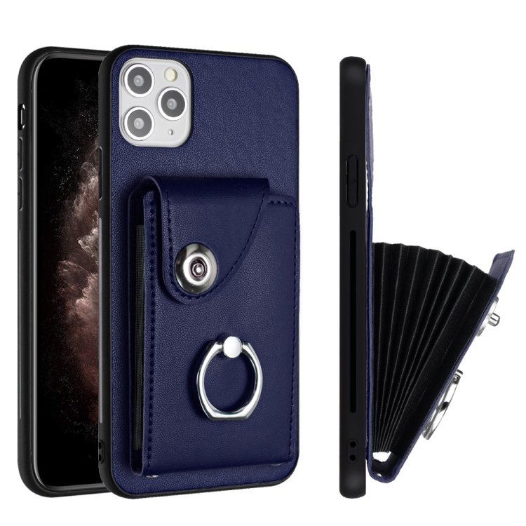 Funda para Teléfono iPhone 11 Pro Max con Soporte para Anillo y Bolsa para Tarjeta (Azul)