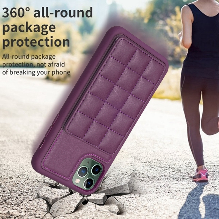 Funda para Teléfono iPhone 11 Pro Max Grid Ranura para Tarjeta (Morado Oscuro)