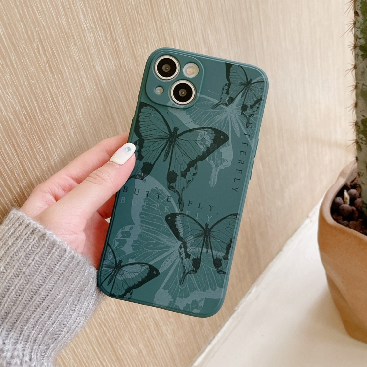 Funda para teléfono iPhone 11 Pro Max Side Pattern Magic TPU (Mariposas Verdes)