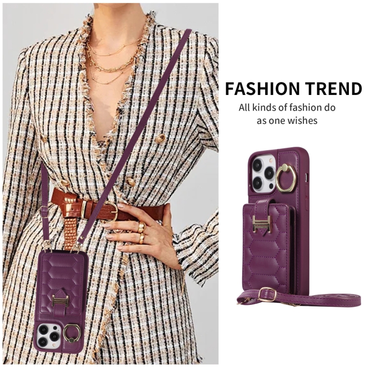 Funda para iPhone 11 Pro Max Vertical Card Bag Ring Holder con Doble Cordón (Morado Oscuro)