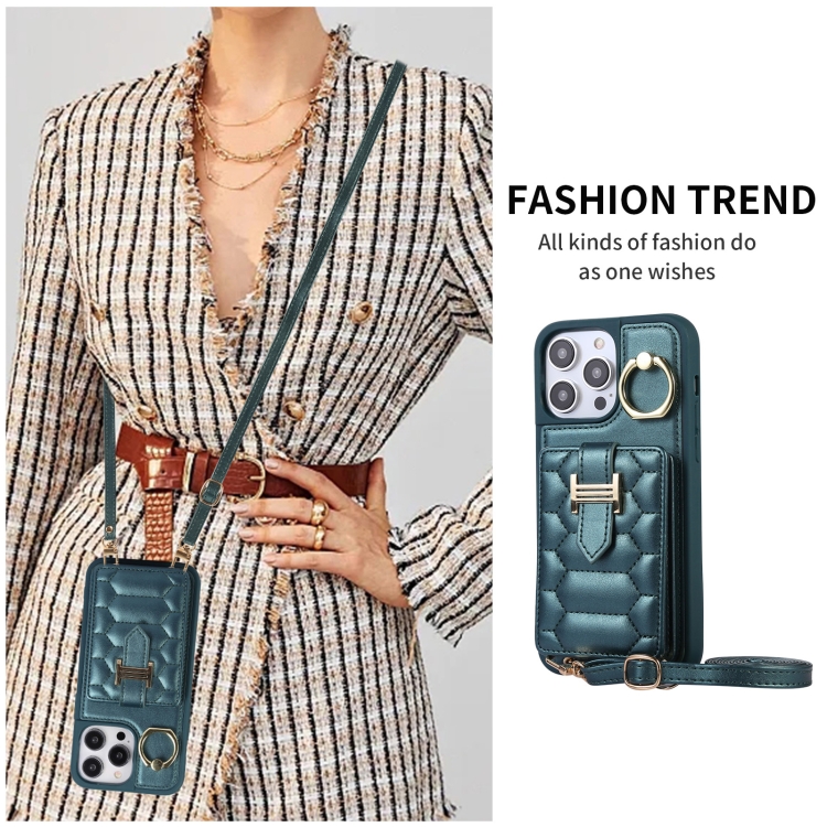Funda para iPhone 11 Pro Max Vertical Card Bag Ring Holder con Doble Cordón (Verde Oscuro)