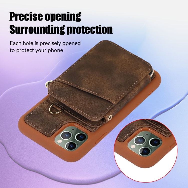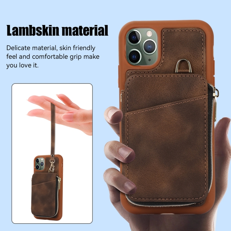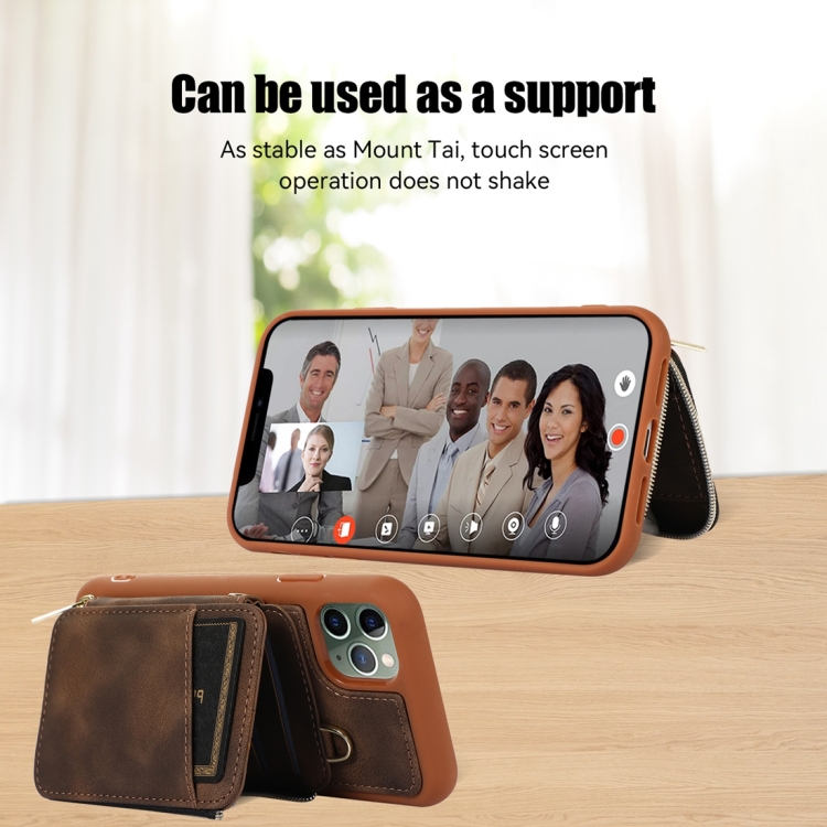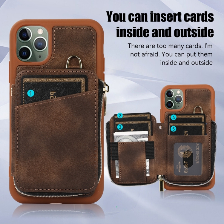 Funda para Teléfono iPhone 11 Pro Max Zipper Card Bag Contraportada (Marrón)