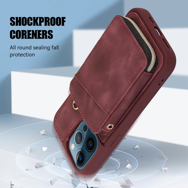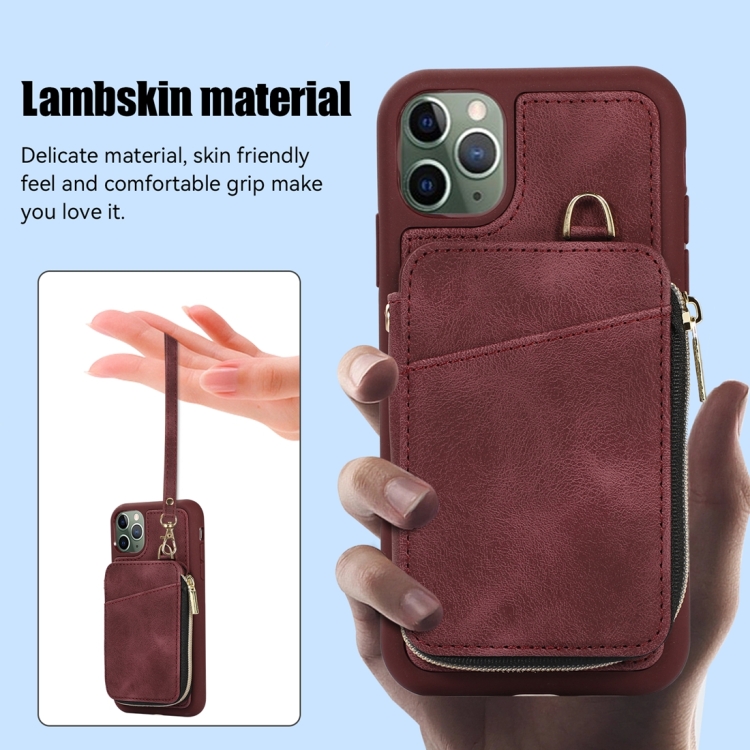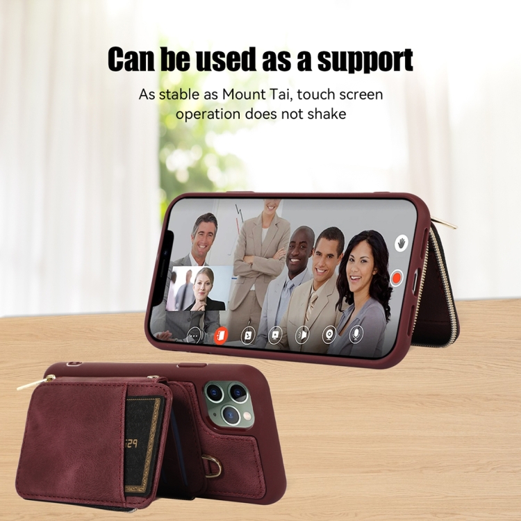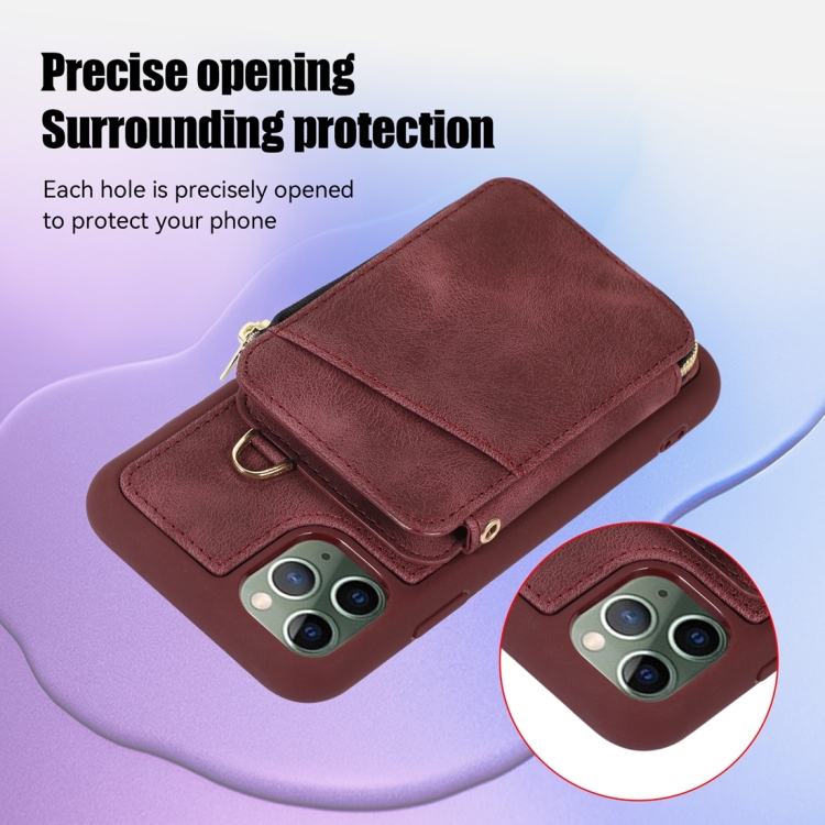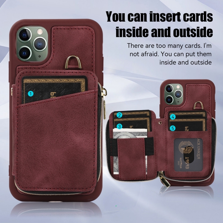 Funda para teléfono iPhone 11 Pro Max Zipper Card Bag Contraportada (Rojo Vino)