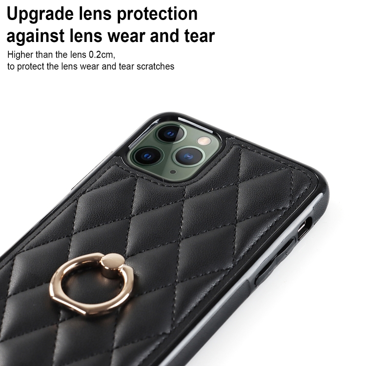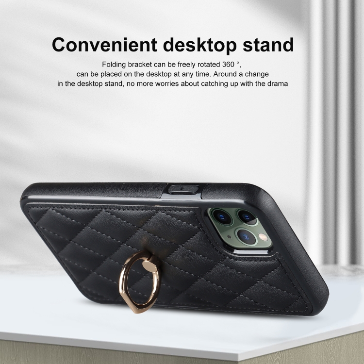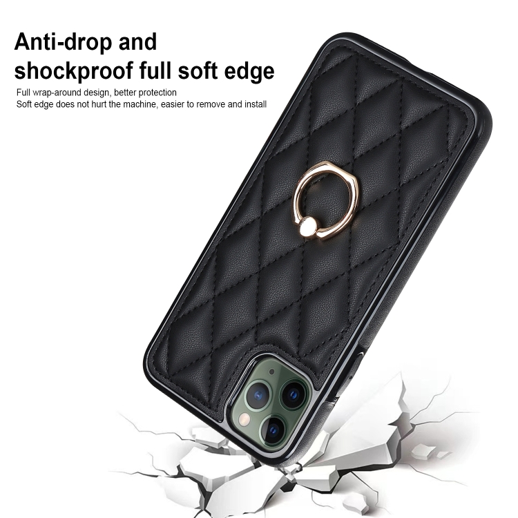 Funda para teléfono iPhone 11 Pro Rhombic PU Cuero con soporte para anillo (Negro)