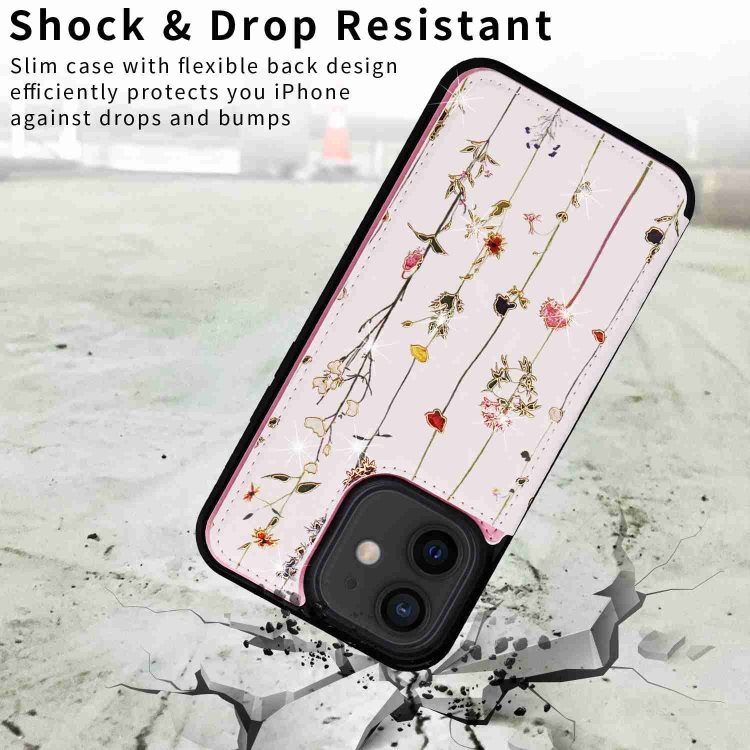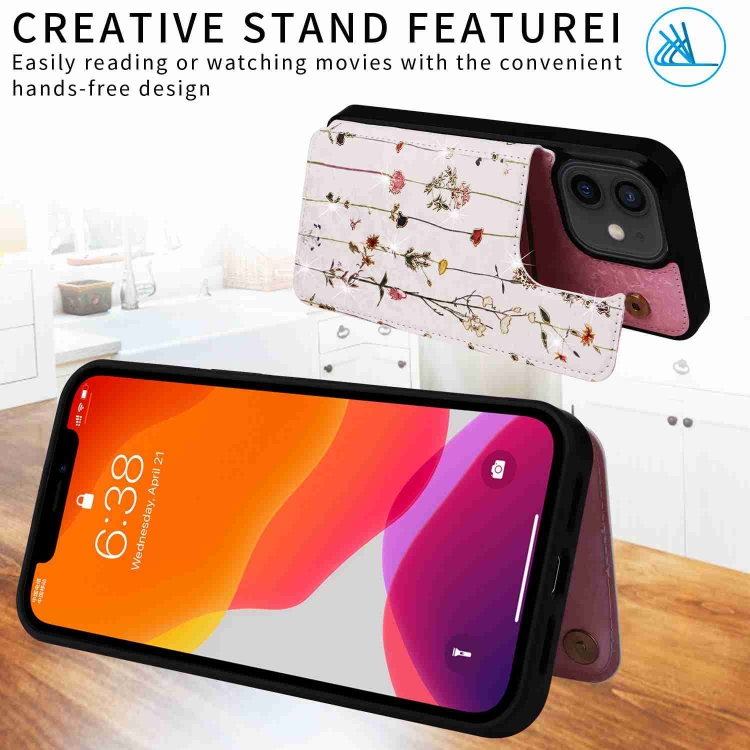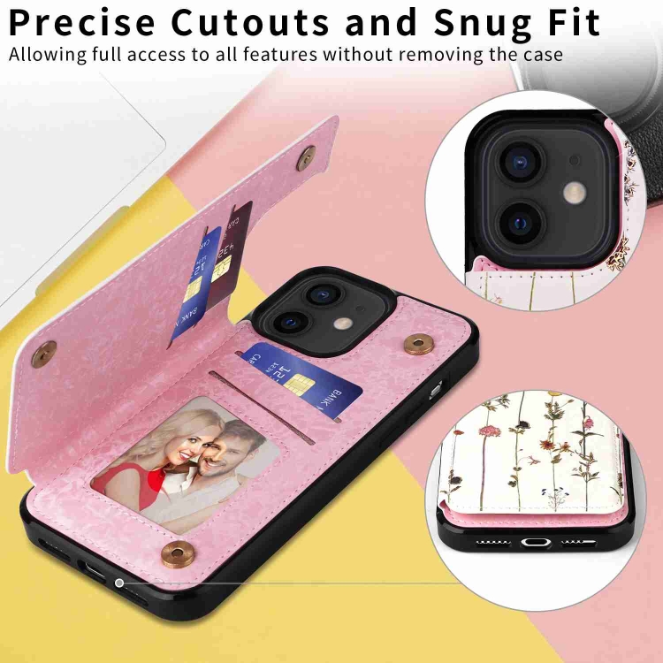 Estuche para teléfono iPhone 12/12 Pro Antirrobo Rfid con doble hebilla (Mundo de Flores Secas)