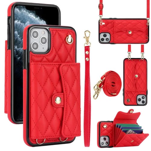 Funda para Teléfono iPhone 12/12 Pro Cuero con Billetera Horizontal Romboidal Cruzada (Rojo)