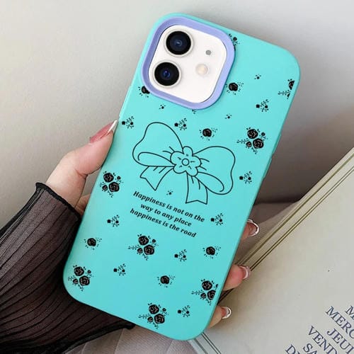 Funda para Teléfono iPhone 12/12 Pro Híbrida TPU y PC con Lazo Floral (Cian Cielo)