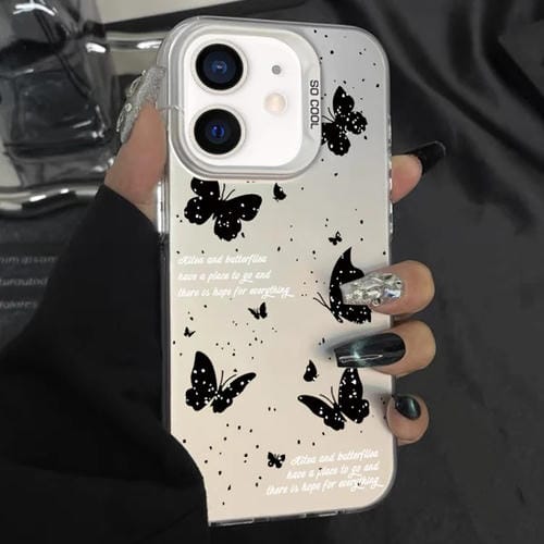 Caja de Teléfono Híbrida para iPhone 12 TPU para PC Pintura Plateada (Mariposa de Tinta Blanca)