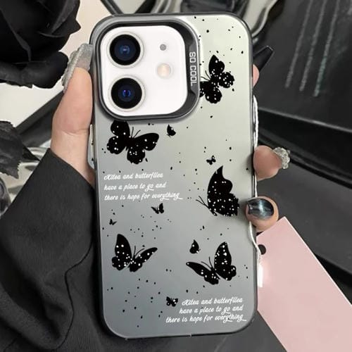 Caja de Teléfono Híbrida TPU para PC iPhone 12 con Pintura Plateada (Mariposa de Tinta Negra)