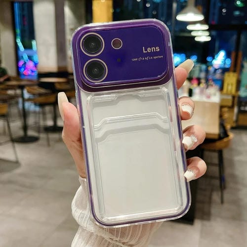 Caja de Teléfono Híbrida para iPhone 12 TPU para PC Ventana Grande Ranura para Tarjeta (Púrpura Oscuro)