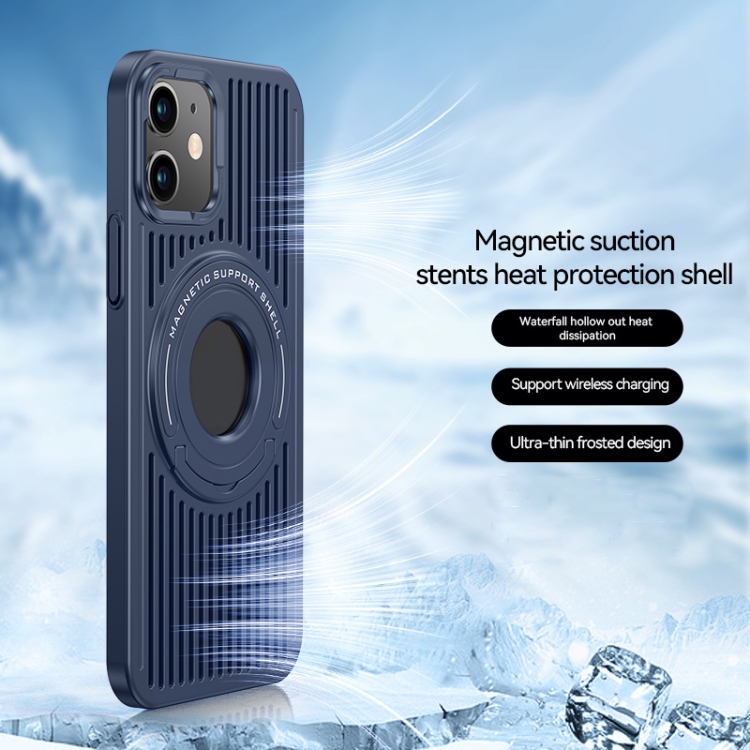 Funda para Teléfono iPhone 12 Cooling Magsafe con Soporte de Anillo Magnético (Azul)