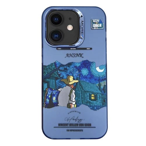 Estuche para Teléfono iPhone 12 Ilustración Lente Galvanizada (Azul)