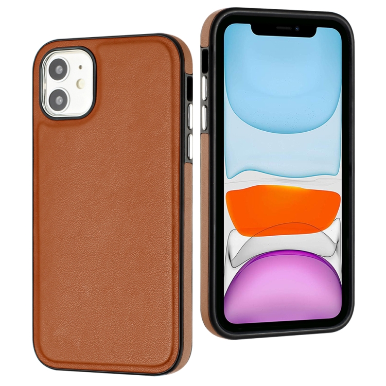 Funda de Teléfono para iPhone 12 Cobertura Total Textura de Cuero (Marrón)