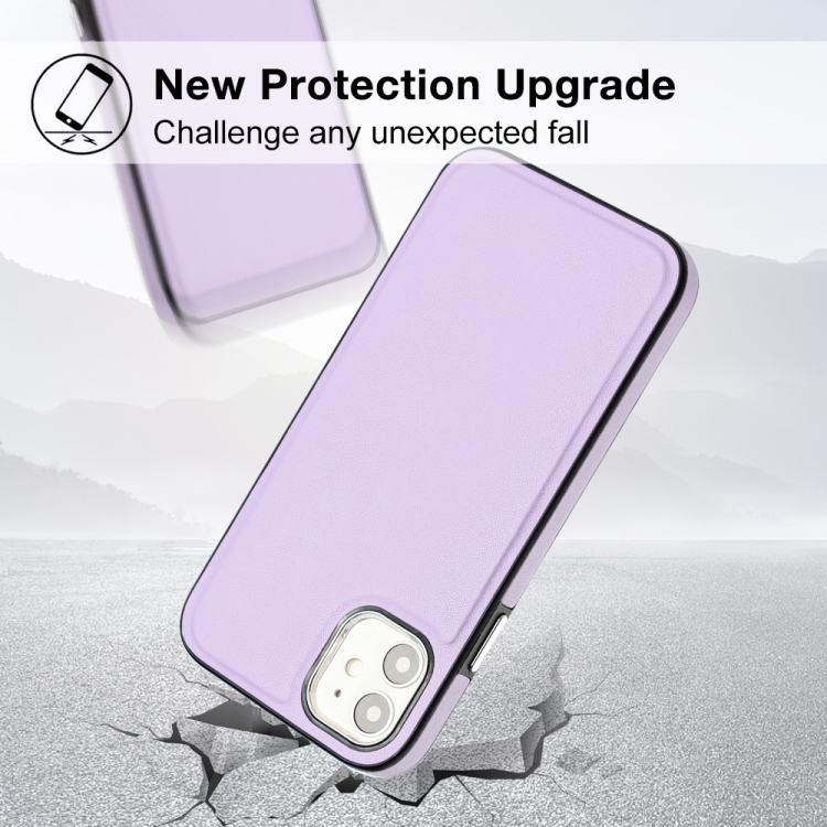 Funda de Teléfono para iPhone 12 Cobertura Total Textura de Cuero (Púrpura)