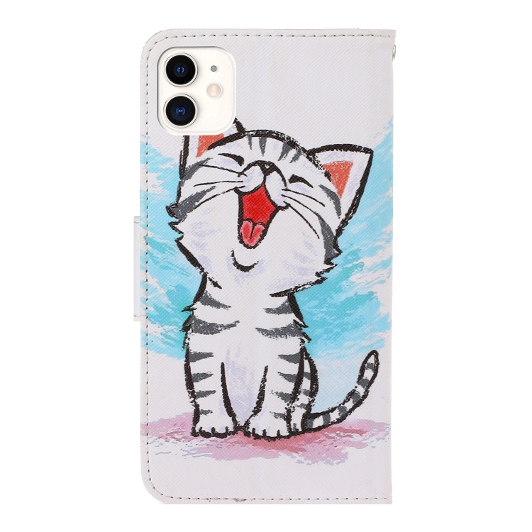 Estuche para iPhone 12 Mini Cuero de PU Tapa Horizontal Dibujo 3D Soporte Ranuras para Tarjetas y Billetera (Gato de Boca Roja)