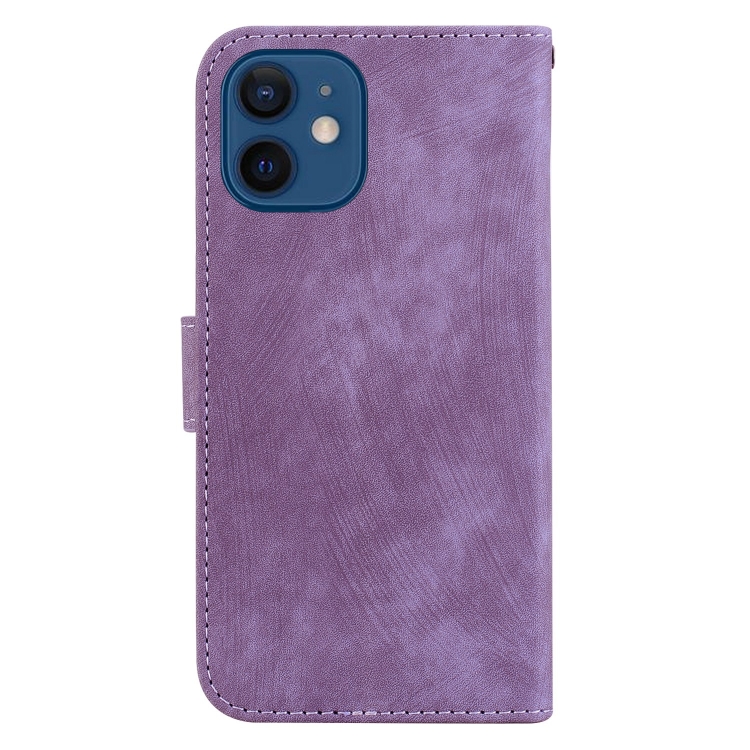 Funda de Cuero para iPhone 12 Mini con Relieve Little Tiger (Púrpura)