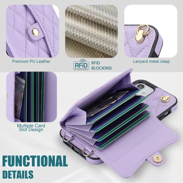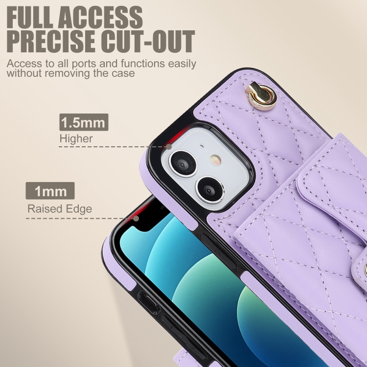 Funda para Teléfono iPhone 12 Mini Cuero con Billetera Horizontal Romboidal Cruzada (Púrpura)