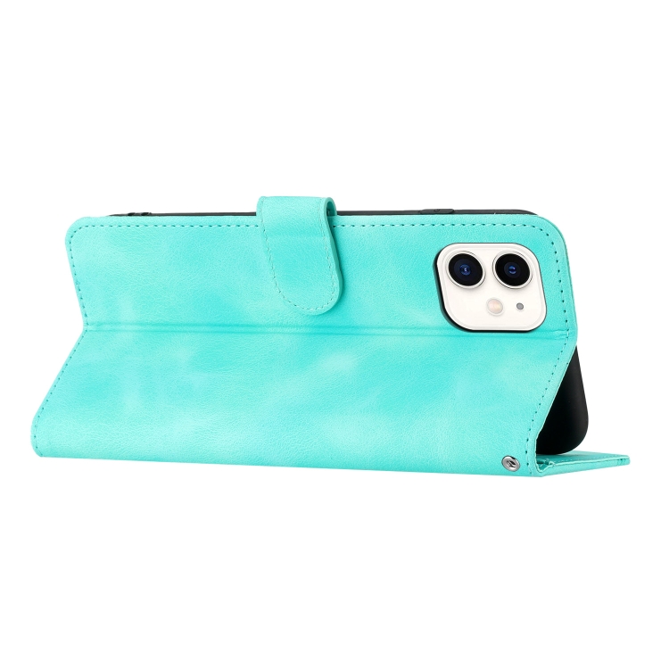 Funda para iPhone 12 Mini Skin Feel con patrón de corazón de cuero (Azul Claro)