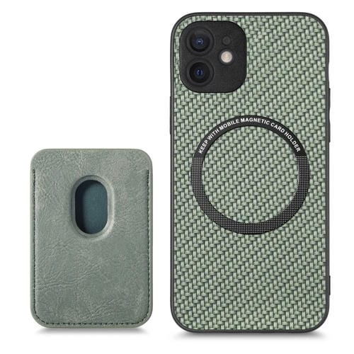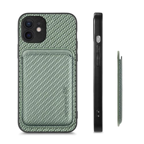 Funda para iPhone 12 Mini Tarjeta Cuero Fibra de Carbono Magsafe Magnética (Verde)