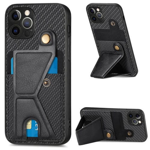 Funda para Teléfono iPhone 12 Pro Carbon Fiber Wallet Flip Card con Soporte en Forma de K (Negro)